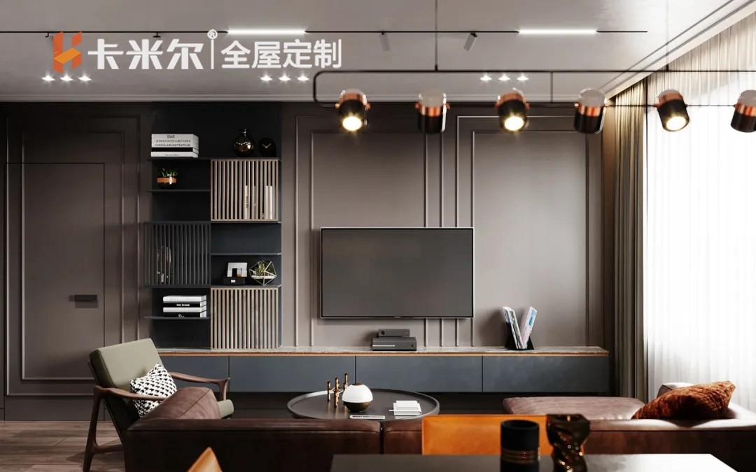 書墻型電視背景也是當(dāng)下較流行的一種,這種類型的背景墻對于喜歡看書或是家里藏書多的家庭來說,是一種非常好的選擇,既能起到收納的作用,也能擁有展示的功能。當(dāng)然每個家庭的需求都會有所不同,例如對于看書少的人來說,可能這種背景墻能放的書就不夠。但書墻型電視背景墻對于有孩子的家庭來說,是可以培養(yǎng)孩子看書習(xí)慣的,若是覺得全部敞開的格子很容易招灰,那么也可以設(shè)計(jì)成移門或是玻璃門。