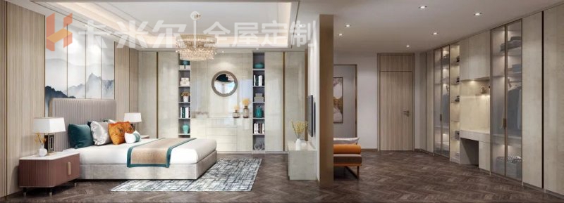 汲取現(xiàn)代主義與后現(xiàn)代主義的設(shè)計(jì)靈魂,主臥將兩種設(shè)計(jì)風(fēng)格融合在一起,將高度藝術(shù)化的靈感化為實(shí)物設(shè)計(jì),床頭壁畫采用繪聲繪色的水墨畫,衣柜對(duì)稱設(shè)計(jì),中間設(shè)計(jì)了梳妝臺(tái)面,使空間得以延展,利用率極高。