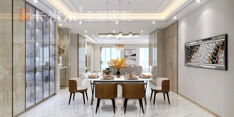 浪漫到極致,展現(xiàn)出來(lái)的是簡(jiǎn)約而奢華。餐廳舒服的顏色搭配讓人倍感親切,餐邊柜搭配玻璃掩門,在LED燈照射下襯托出空間的奢華,簡(jiǎn)單而高雅。