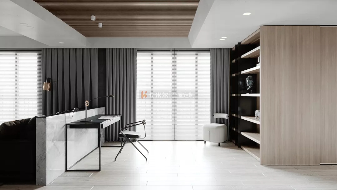 整體設計簡潔利落,將線性美學發(fā)揮到極致,使空間有一種延伸感,置身其中恰似思想遨游,愜意又隨性。