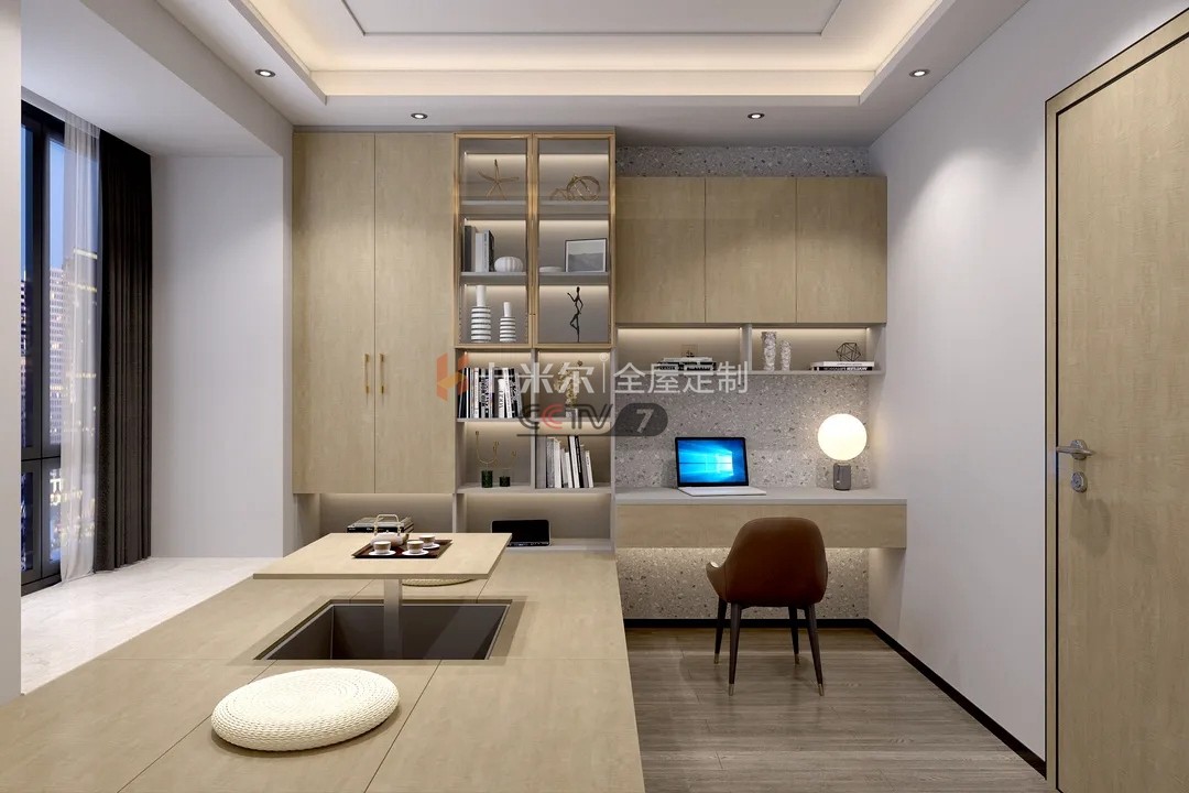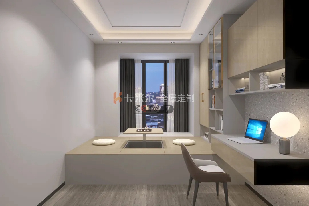 沉穩(wěn)的格局設(shè)計,營造一個靜謐高雅、舒適和諧的榻榻米空間,學(xué)習(xí)桌、書柜、儲存柜與榻榻米一體的設(shè)計,節(jié)省了不少工序與空間,并且這個空間集多種功能于一室,實用性很強,簡單地演繹低調(diào)奢華的生活體驗。