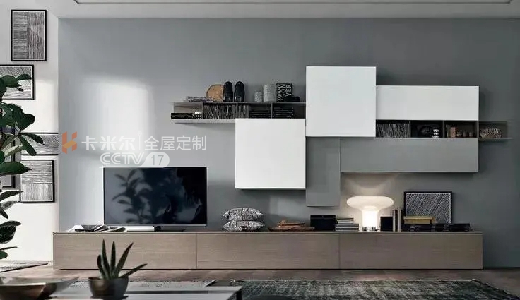 內(nèi)嵌于墻面的電視柜最節(jié)省空間,根據(jù)墻面特點和電視的大小,現(xiàn)場定制收納柜,容量大又整齊,可以滿足大部分的公共物品收納或圖書、藏品的收納。