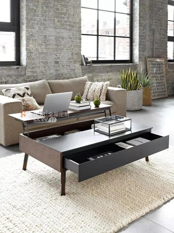 客廳在家庭中集會客、視聽、休閑于一身,人們賦予客廳的重任越多,其堆放的物品也就越多。尤其像遙控器、報刊書籍、零食等各類雜物,如果僅僅用傳統(tǒng)的落地柜,不僅非常占用地面空間,而且時間久了,整個客廳會顯得十分凌亂。