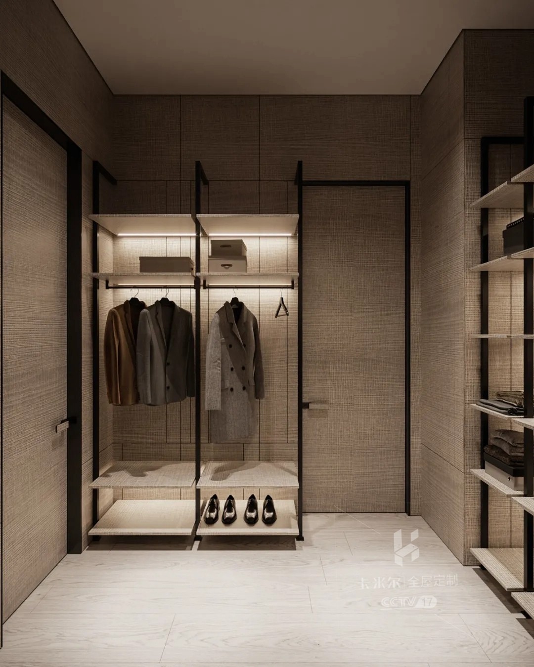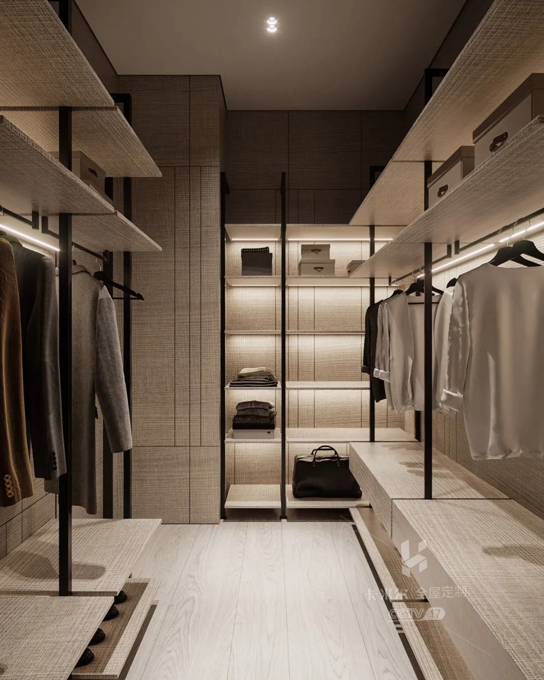 開放式的衣帽間設(shè)計(jì)給人的感覺就是很寬敞,空氣流通很好。