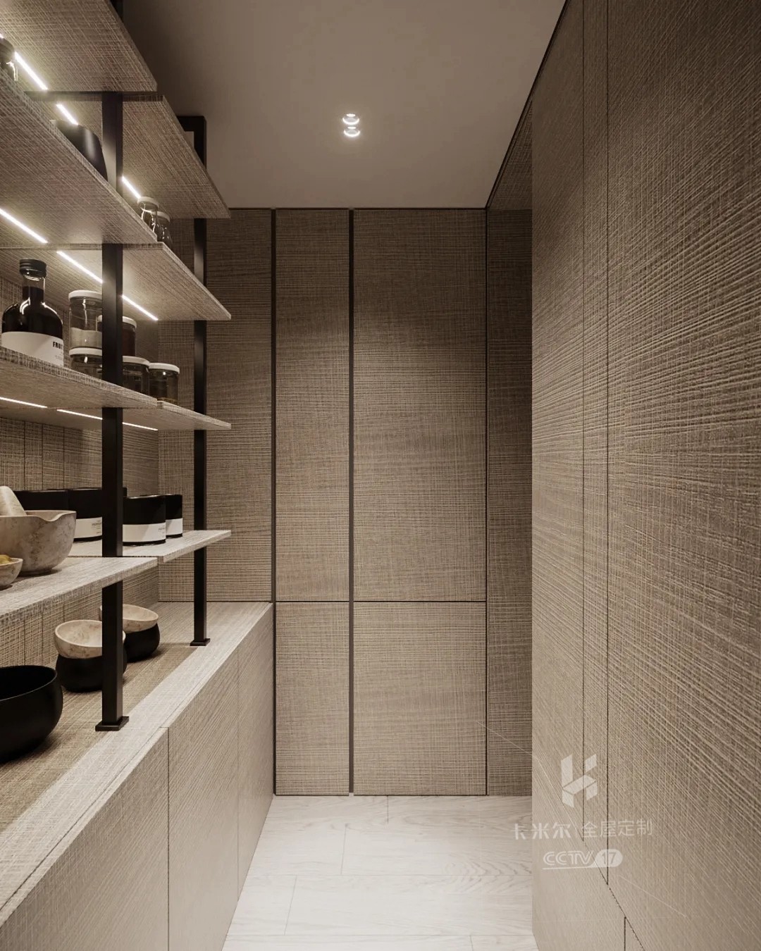 簡(jiǎn)約傳統(tǒng)的調(diào)色板強(qiáng)調(diào)了一系列復(fù)雜的細(xì)節(jié),而溫暖的點(diǎn)光源創(chuàng)造了一種舒適豪華的獨(dú)特氛圍
