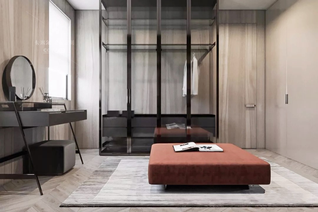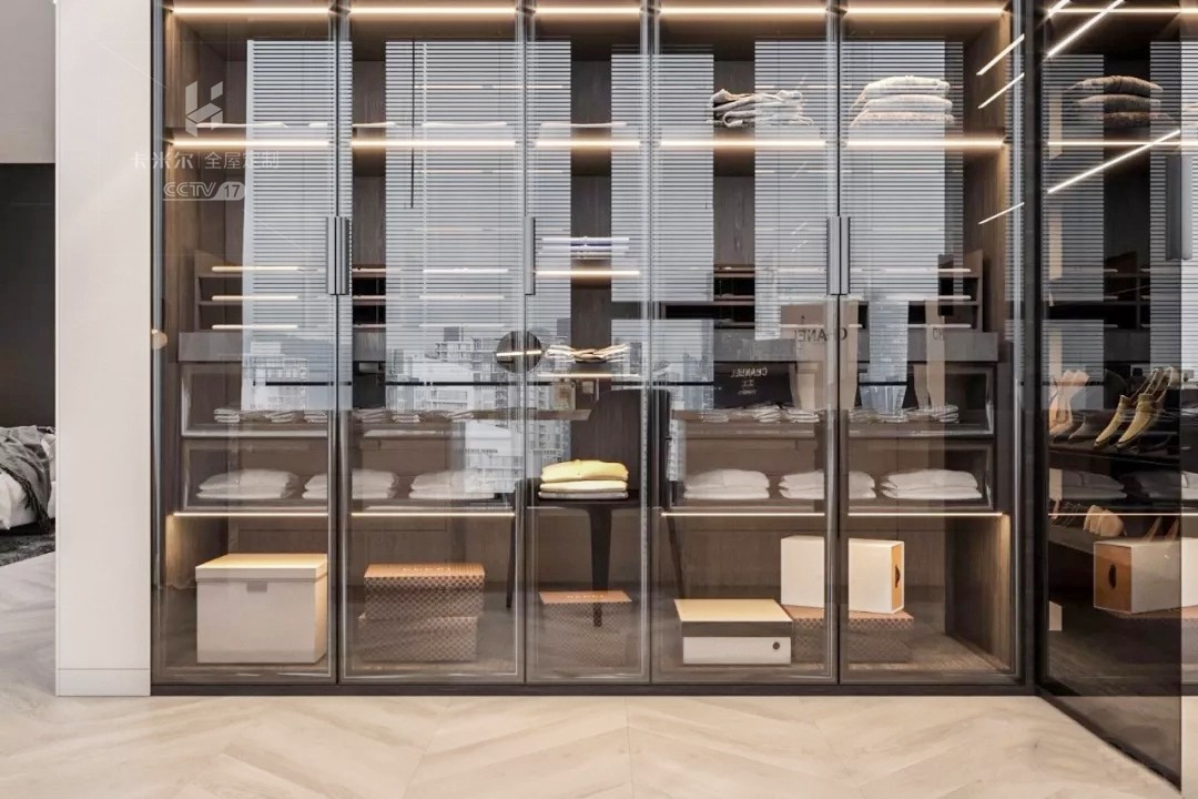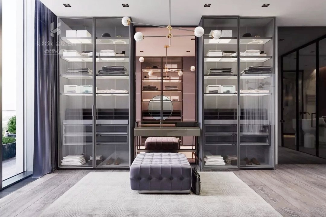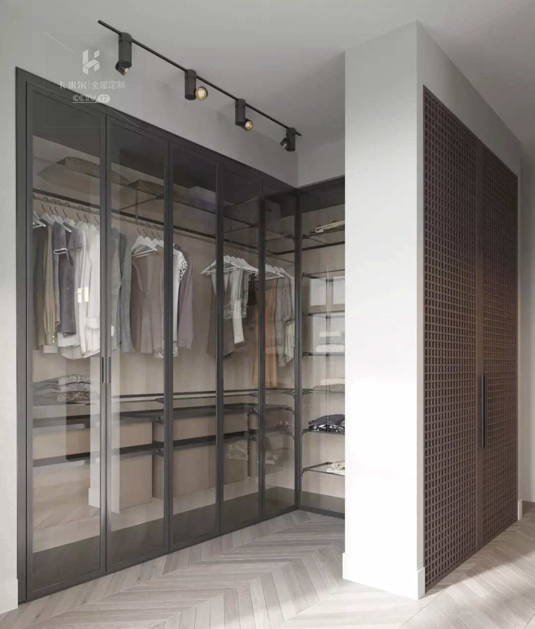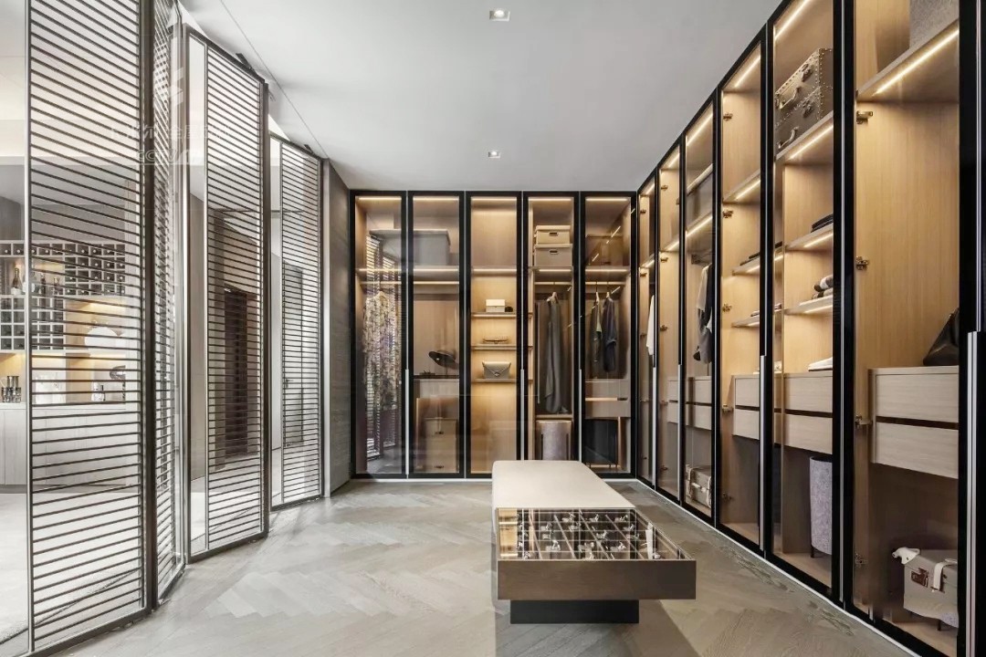 輕奢玻璃門衣帽間玻璃材質(zhì)具有質(zhì)感透明,折射光芒,可以讓大空間更大氣,小空間更寬敞通透,還能給人優(yōu)雅、精致的感覺。
