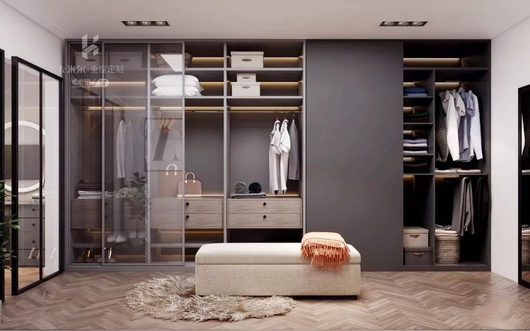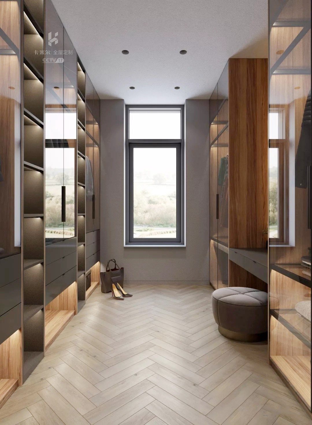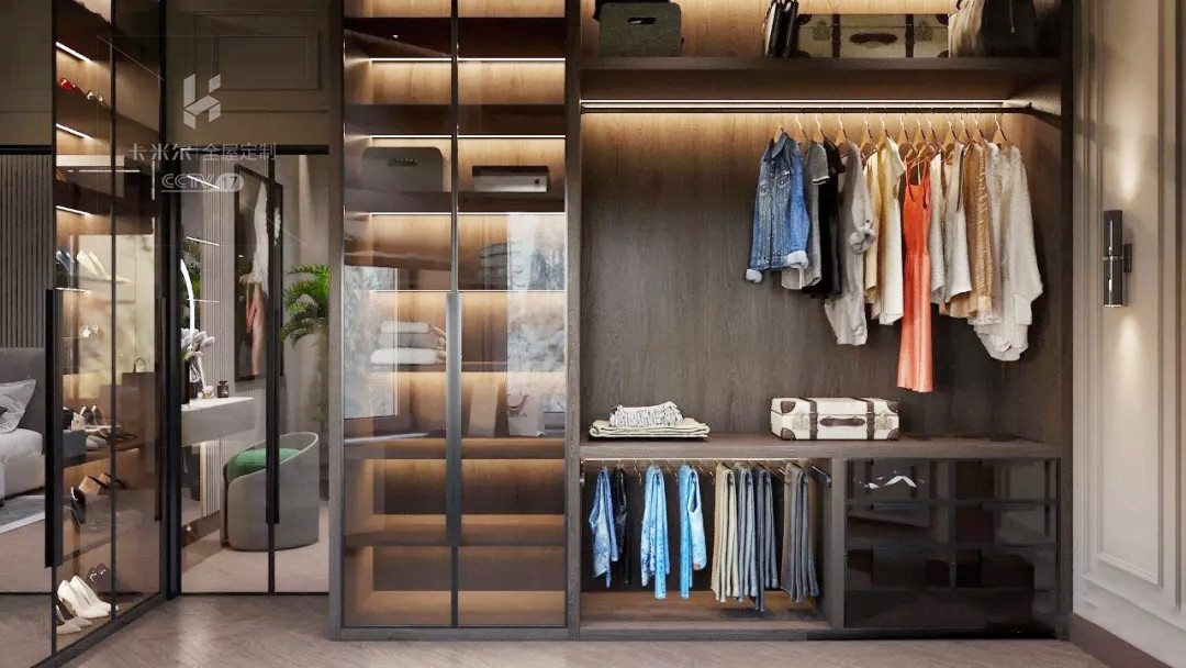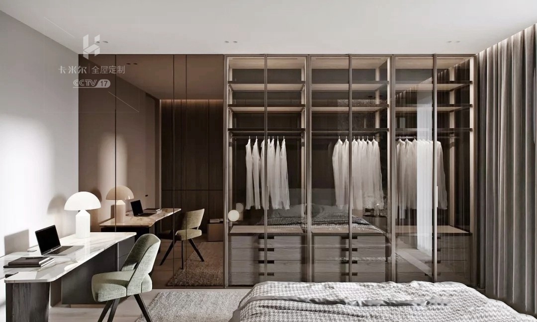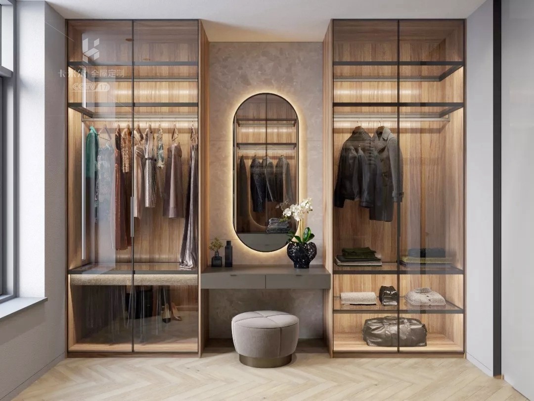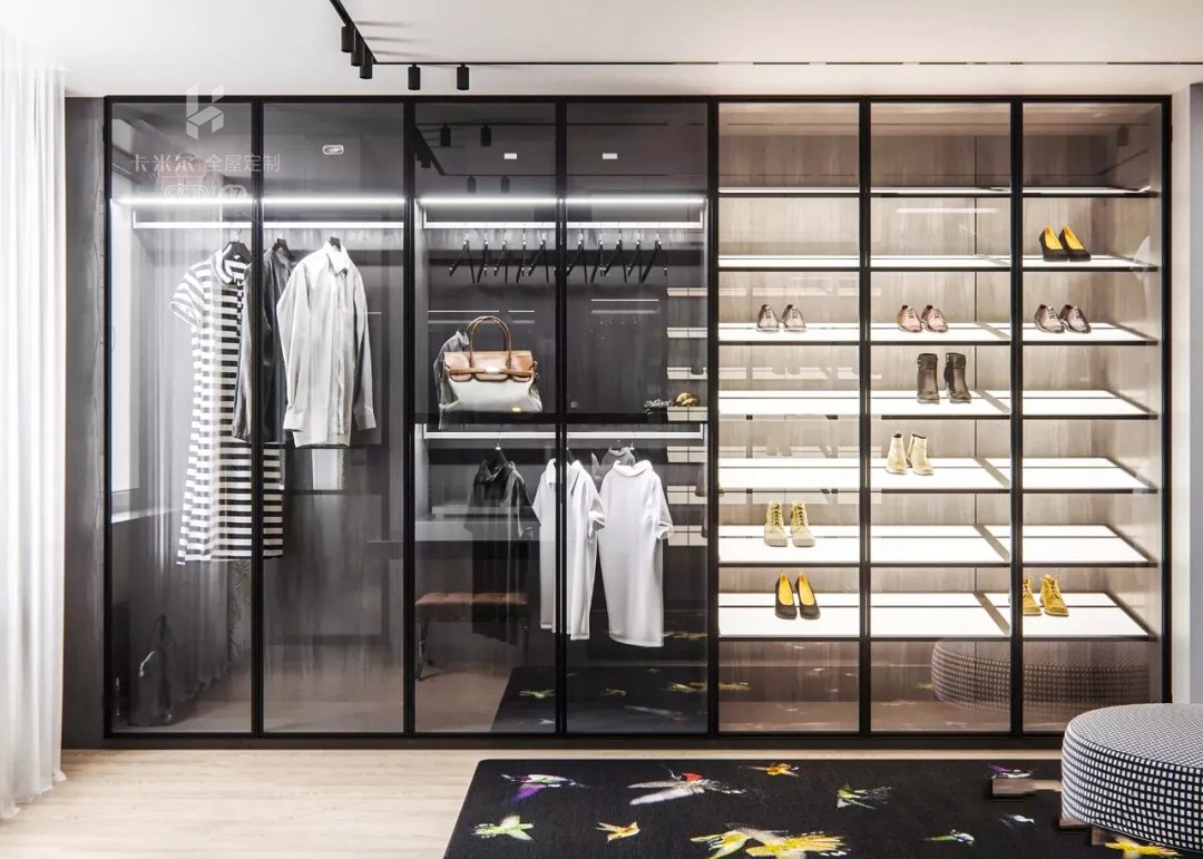 輕奢玻璃門衣帽間玻璃材質(zhì)具有質(zhì)感透明,折射光芒,可以讓大空間更大氣,小空間更寬敞通透,還能給人優(yōu)雅、精致的感覺。
