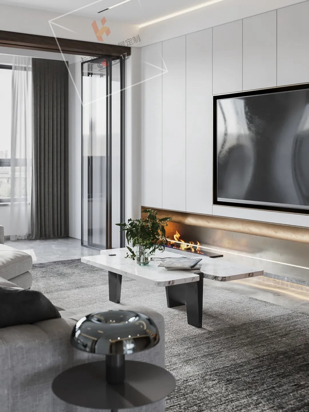 客廳空間簡約時(shí)尚的設(shè)計(jì)感、摒棄繁瑣元素的同時(shí),預(yù)留收納空間,保留收納功能比例考量生活需求,裝飾性和收納性功能兼?zhèn)洌?xì)究柜體無把手設(shè)計(jì),全按彈式,輕輕用手一按門就可以打開,方便簡潔,同時(shí)也使生活更加井然有序。