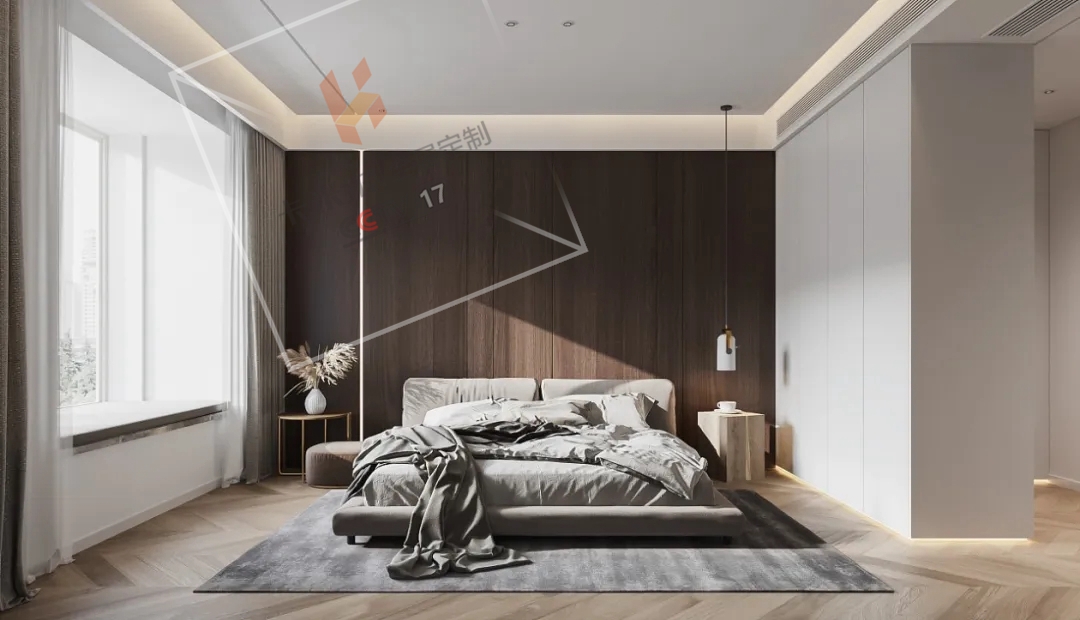 高雅的色彩讓主臥散發(fā)著舒適又輕奢之氣,簡潔的線條勾勒出空間,純粹、精致、衣柜這樣設(shè)計(jì)將空間利用到極致,并且讓動(dòng)線設(shè)計(jì)保持流暢,線條感干凈利落。
