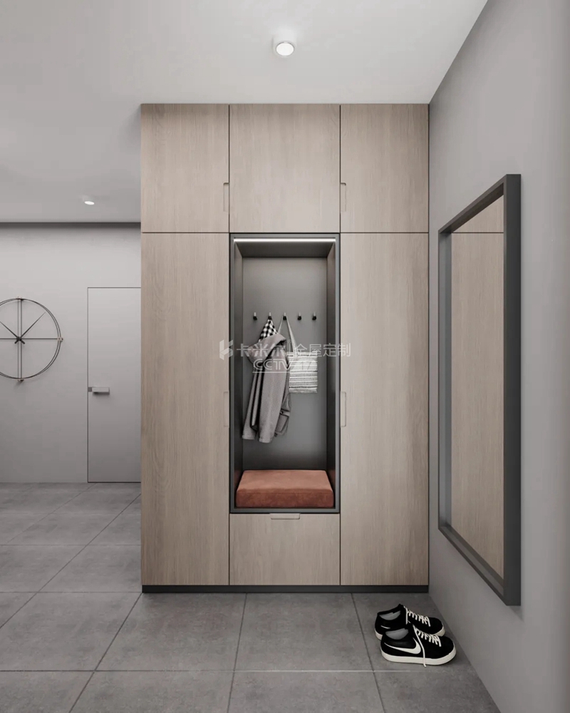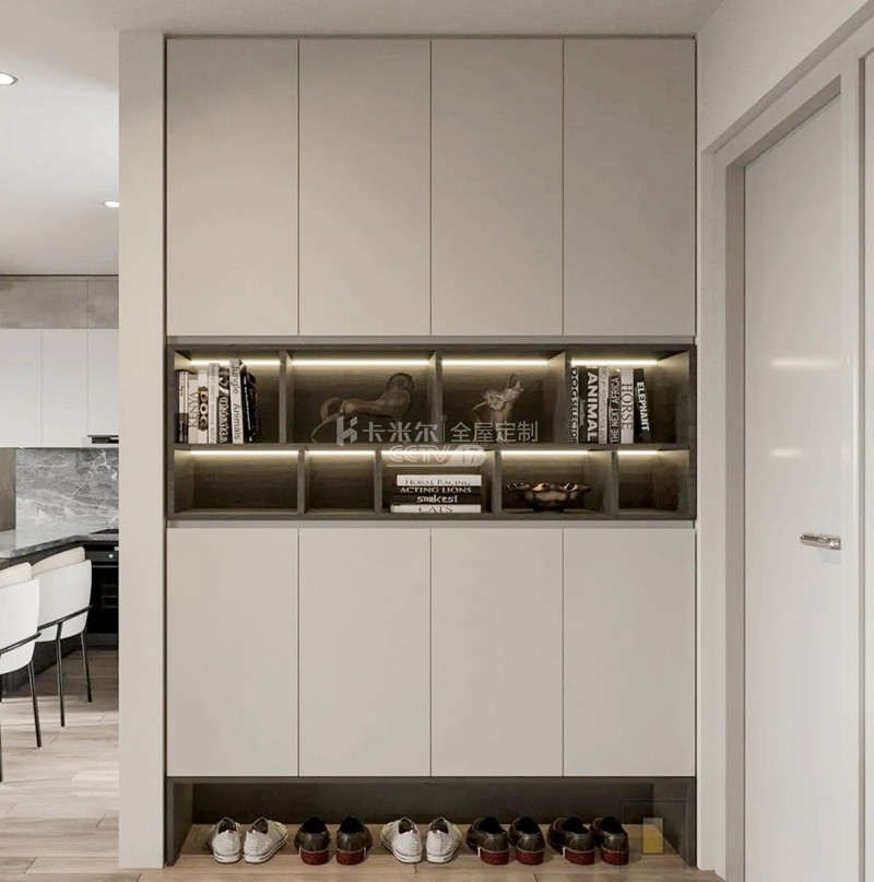 鞋柜可承擔(dān)的功能極多,但多重功能組合的鞋柜會(huì)削減鞋柜的收納能力,如玄關(guān)面積足夠,可以設(shè)計(jì)換鞋凳、掛衣區(qū)等多功能配備,如果面積有限,請(qǐng)先確保鞋柜的儲(chǔ)鞋量,再考慮其他功能實(shí)現(xiàn)。