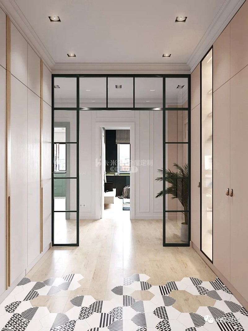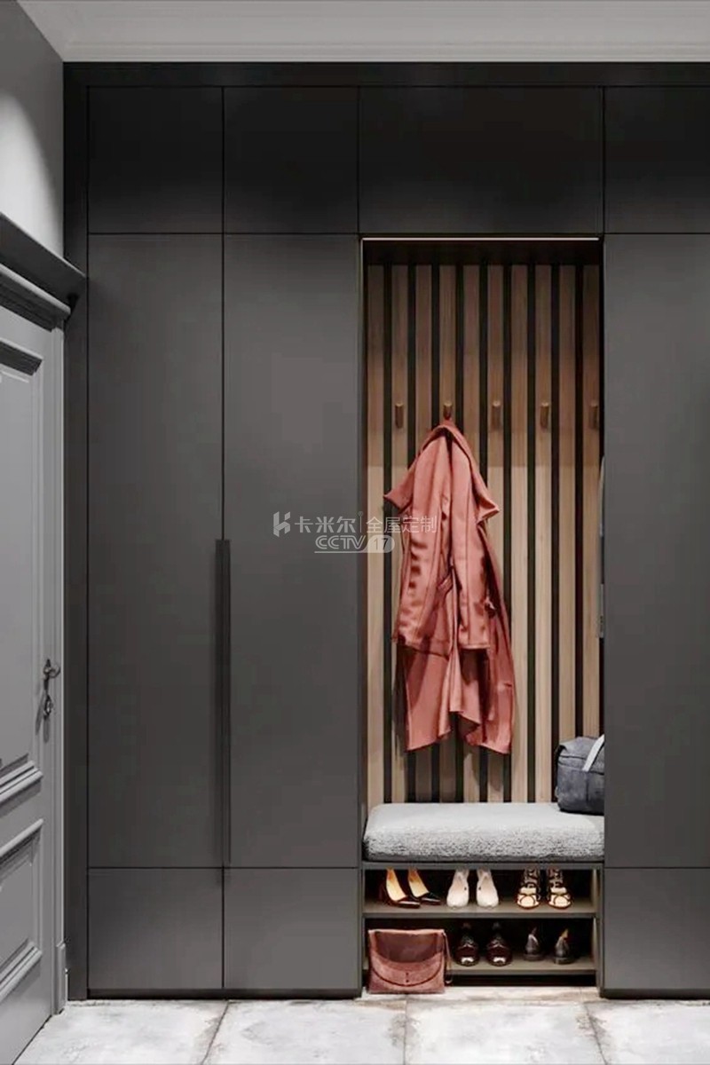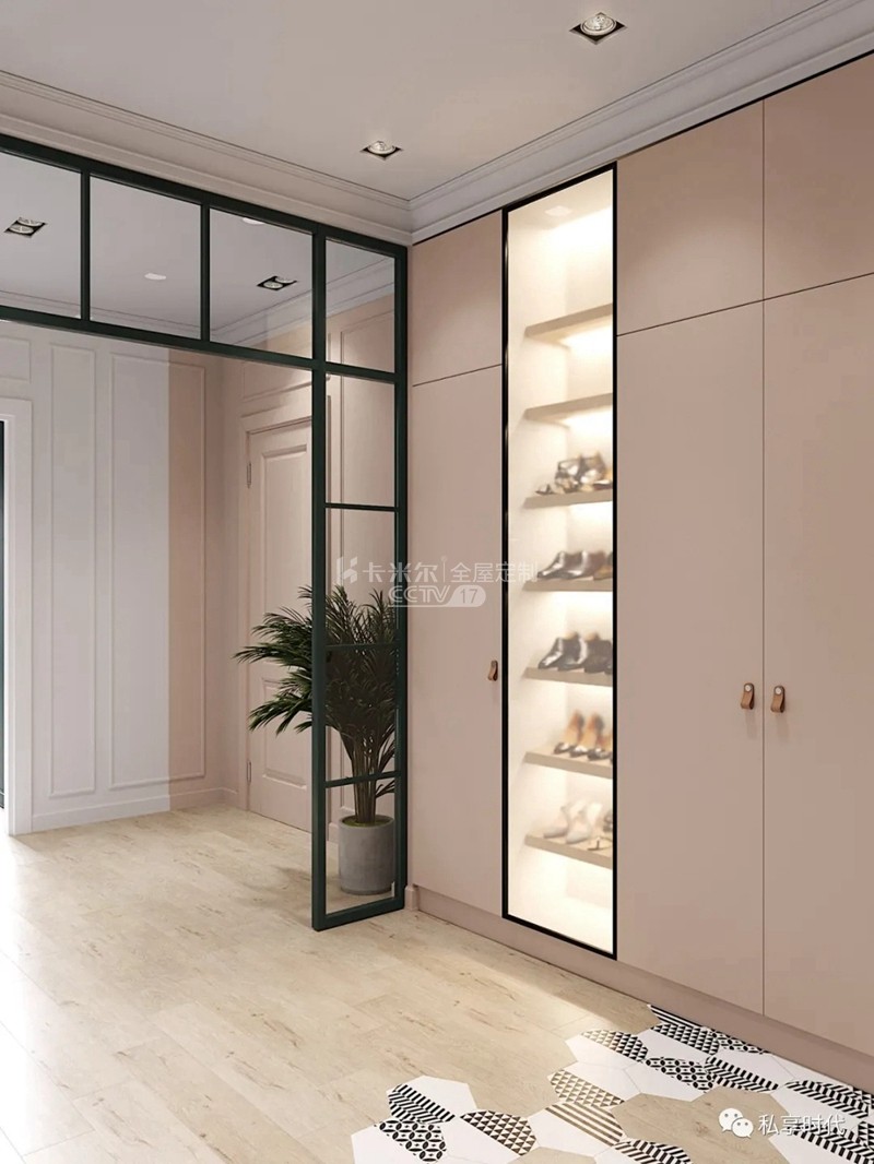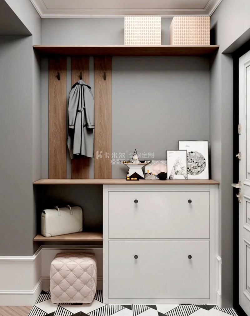 玄關(guān)是入戶的第一道風(fēng)景線,而鞋柜是玄關(guān)最重要的一件家具,直接關(guān)系著整體的設(shè)計(jì)風(fēng)格,不管空間的大小,都應(yīng)該適當(dāng)?shù)卦O(shè)計(jì)一個(gè)合適的玄關(guān),既給家?guī)?lái)一點(diǎn)含蓄內(nèi)斂的隱約美,又能解決進(jìn)門的簡(jiǎn)單收納問(wèn)題。所以簡(jiǎn)單的鞋柜是必需品,如果有空間還可設(shè)計(jì)衣帽間。