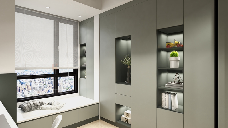 書房設(shè)計整體的現(xiàn)代感比較沉穩(wěn),色調(diào)以灰白為主,沉穩(wěn)大氣。