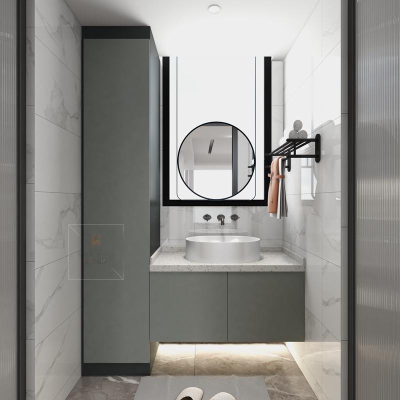 時尚的圓鏡,看上去飽滿、有設(shè)計感,能夠給墻面適當(dāng)?shù)牧舭祝Y(jié)合時下超流行的黃銅元素,輕輕松松打造輕奢極簡新風(fēng)尚。臺盆一體化設(shè)計臺盆與臺面、浴室柜都設(shè)計在一體,沒有中間的接縫,安裝和清潔都非常方便。