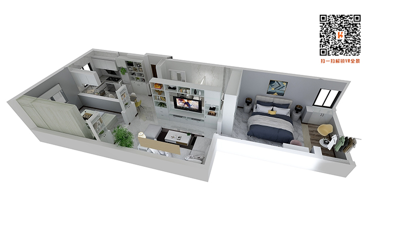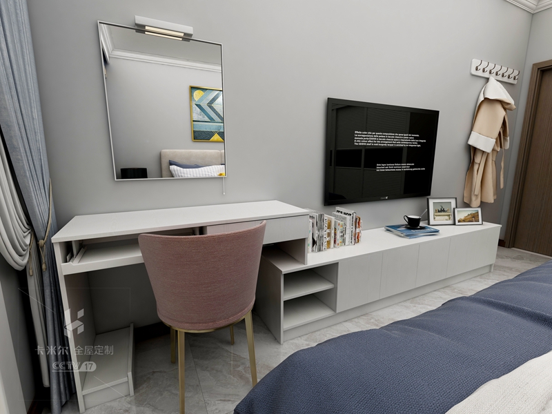 臥室電視柜由地柜+書桌組合可以擺放臺燈、相框、飾品,柜里則可以塞進(jìn)大摞的書籍和生活用品,收納空間超值。
