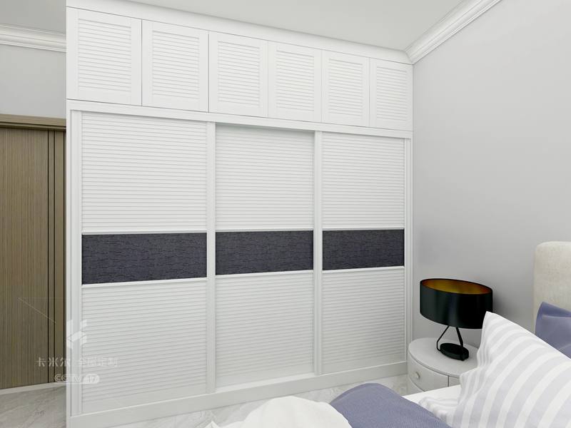 中間開放式的柜子使用白色木紋飾面板,加上柜內(nèi)的燈光裝飾,為空間增添了些許暖意。