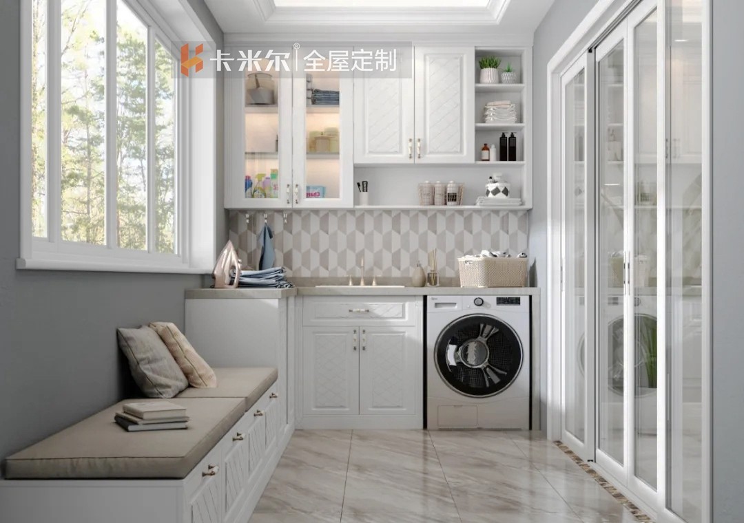 定制的陽(yáng)臺(tái)柜同時(shí)滿足了機(jī)洗和手洗的需求,還能充當(dāng)盥洗區(qū),免去了上班時(shí)一家人爭(zhēng)洗手間的煩惱。