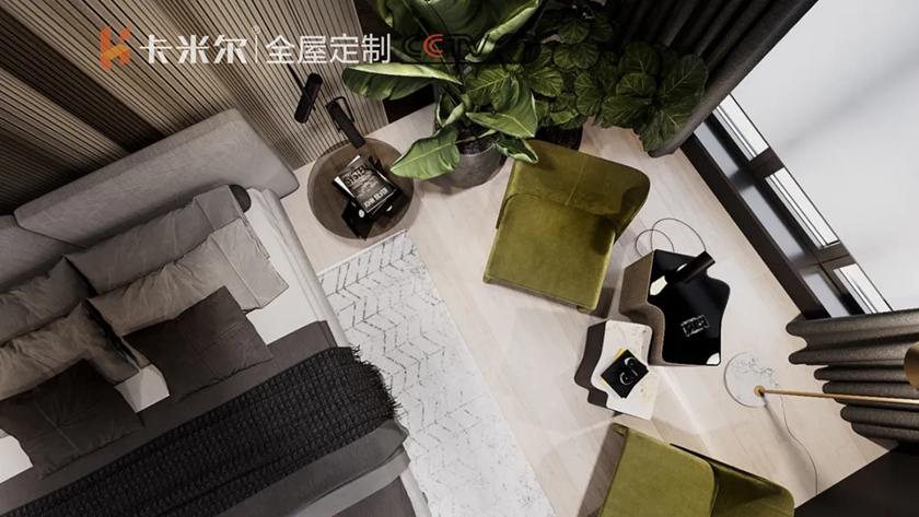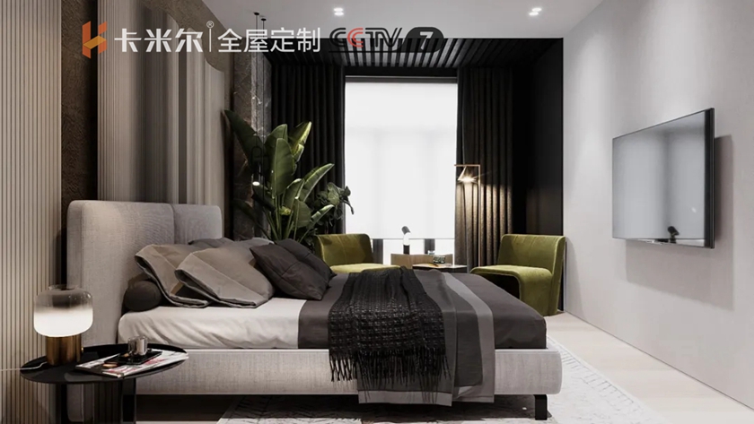 主臥整個(gè)空間色調(diào)素雅,黑色點(diǎn)綴,棕色的棉麻窗簾讓室內(nèi)的氣氛柔和而溫馨,簡(jiǎn)潔而現(xiàn)代的軟裝陳設(shè),達(dá)至女性的柔美。