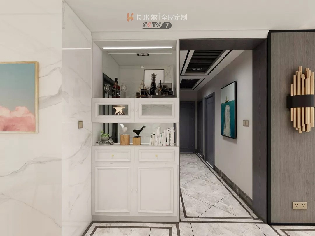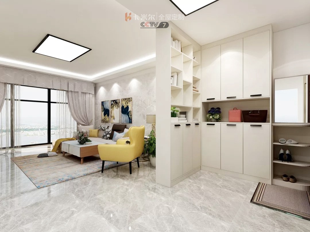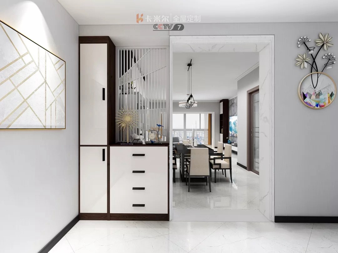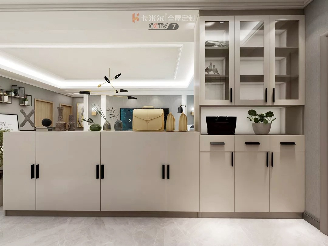 不想一進(jìn)門就看到客廳,想要化解尷尬,那就可以“造”一個(gè)玄關(guān)隔斷。既玄關(guān)柜用來(lái)收納鞋物,也是隔斷柜分離客廳、玄關(guān)隔斷柜想要兼顧美觀和收納,一般設(shè)計(jì)下段為封閉收納,上段留空或開(kāi)放式展示兩個(gè)空間。