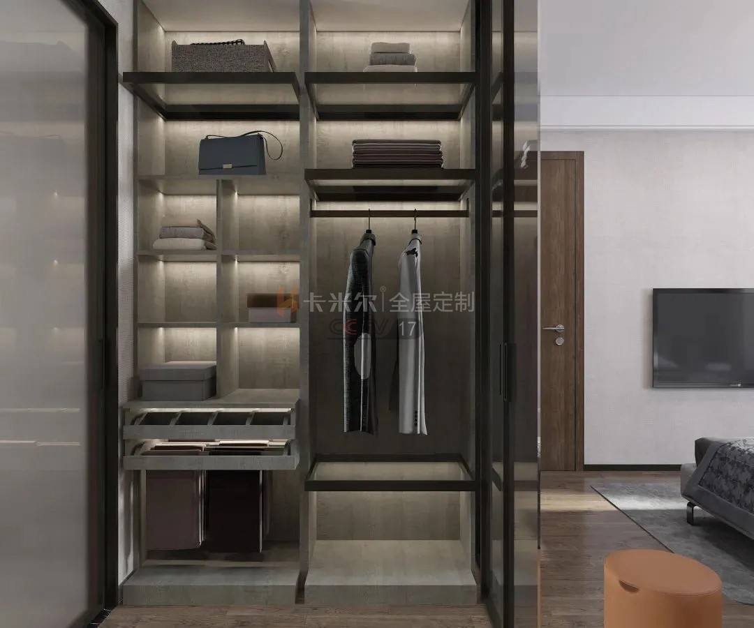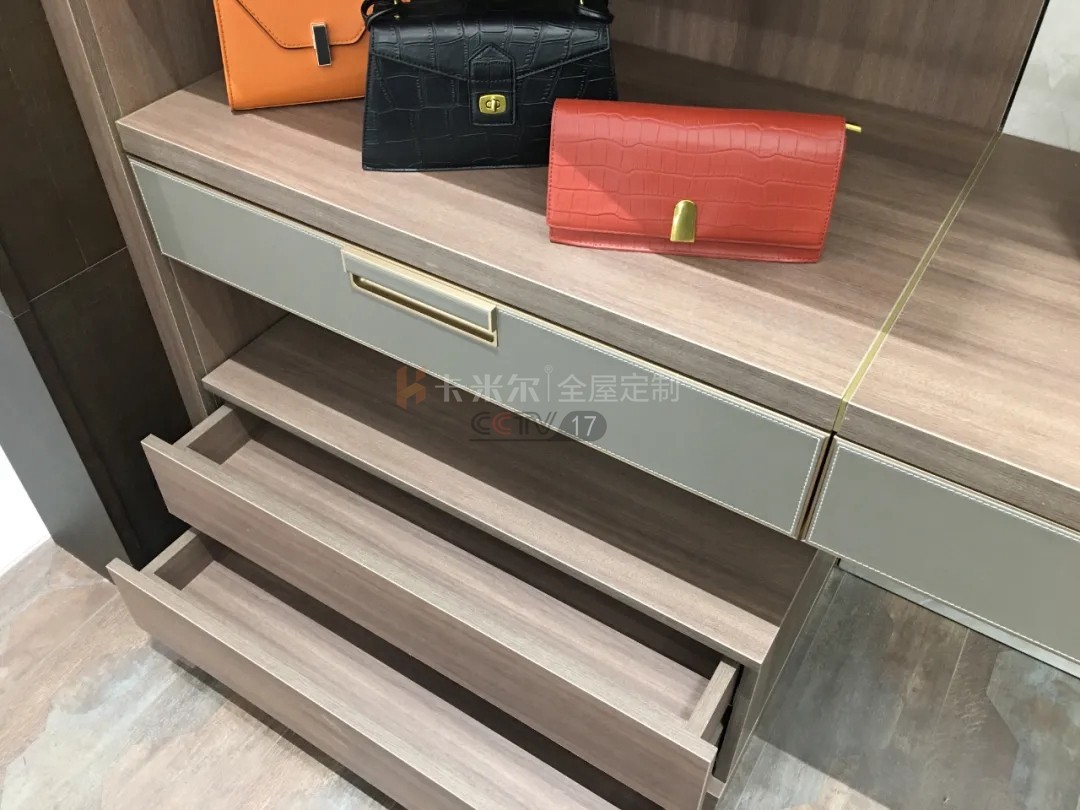 卡米爾家具智能控制自動恒溫,配備滅菌去味除濕裝置,為生活帶來更多便利。衣柜置頂設(shè)計,與地面無縫連接,利用有限空間面積,讓收納功能達(dá)到最大化。衣柜與墻面完美結(jié)合,免去打掃柜頂?shù)穆闊?,同時也顯得衣柜整體性更強(qiáng),令空間看起來更加簡潔舒暢。