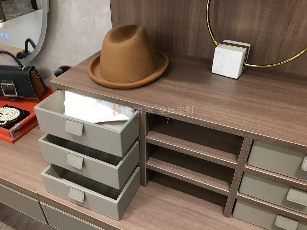 定制衣柜可根據(jù)物品類別,進(jìn)行分區(qū)收納整理。各式各樣的收納柜,不僅可以通過柜內(nèi)分格來收納小物件,還可以巧妙地利用閑置空間,進(jìn)行排列組合,以便收納一些日常使用率較低的大物件。