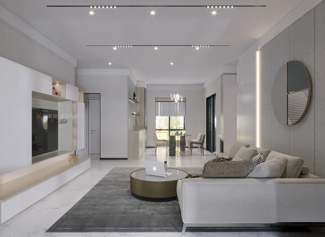 采用不失經(jīng)典的黑、白、灰系做主調(diào),描繪開闊空間。富有溫潤質(zhì)感的威爾流紋營造家的溫馨與優(yōu)雅,電視柜的設(shè)計(jì),注重了空間的開放與互動性,在美觀、實(shí)用性、功能性都下足了功夫,多個(gè)功能區(qū)結(jié)合,注重生活細(xì)節(jié),打造一個(gè)幸福浪漫的港灣。