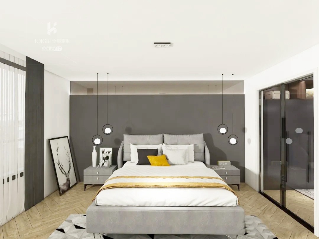 主臥也是以黑灰色為主,搭配米色地板盡顯主人的品味!本套房的亮點(diǎn)設(shè)計(jì):原本的主衛(wèi),因?yàn)闃I(yè)主覺(jué)得也就一家3口住,沒(méi)有必要做兩個(gè)衛(wèi)生間,主衛(wèi)改成衣帽間!更大的容量衣柜,裝載的是一個(gè)女人對(duì)家的夢(mèng)想!