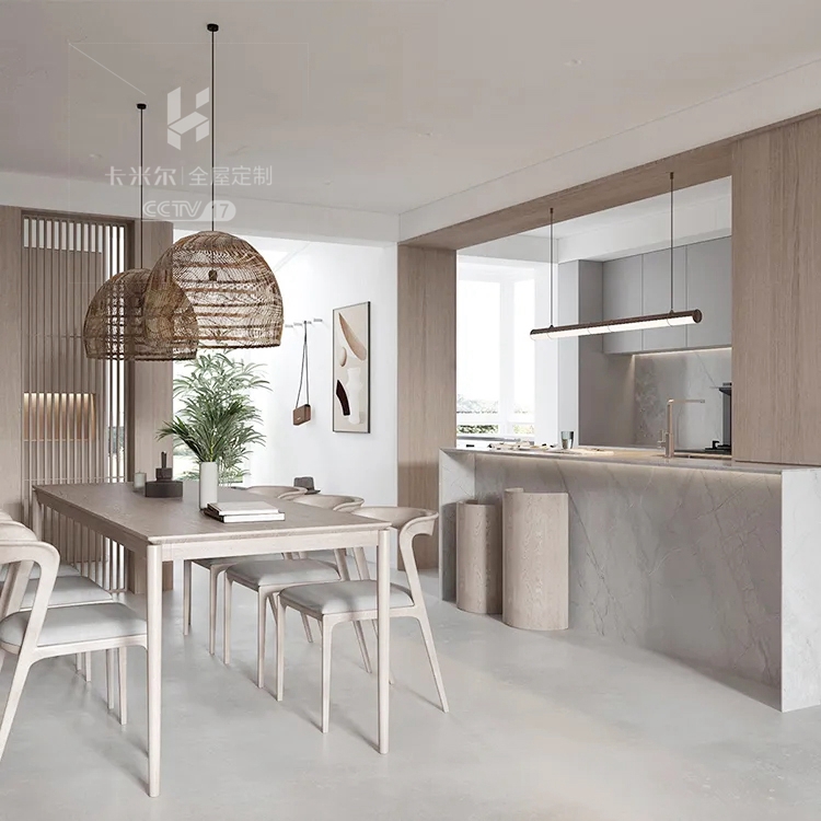 ▼ 望向餐廚位置,整體來看客餐廚三大功能區(qū)同處同一空間中,相比原來的格局,空間的采光通透性、采光以及美觀度都得到了大大的改善。