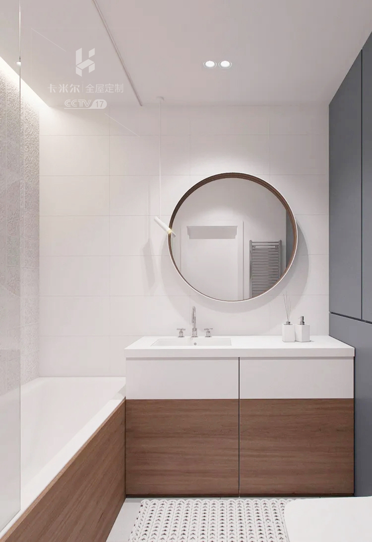 ▼ 衛(wèi)浴間做了干濕分離的設計,以浴缸代替了淋浴功能,玻璃的隔斷也讓浴缸和馬桶互不影響,同時讓衛(wèi)生間的氣質(zhì)更添清新舒適格調(diào)。