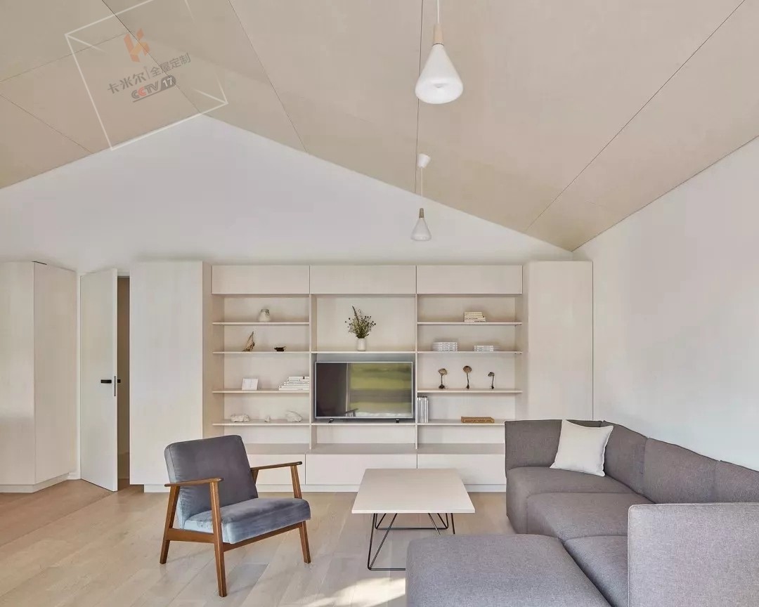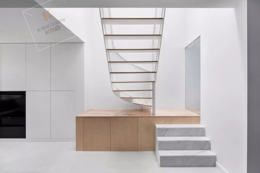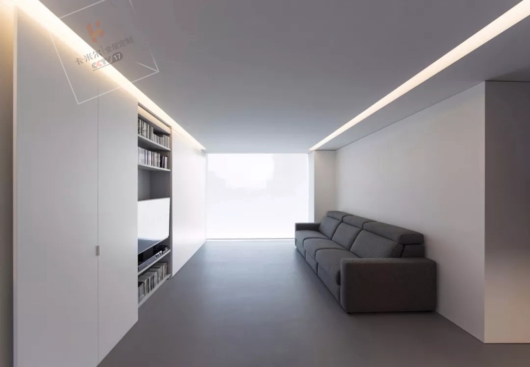 極簡(jiǎn)主義的空間通常采用開放的布局,造型干凈利落的頂面與墻面來體現(xiàn)現(xiàn)代生活的品質(zhì)感。它講究“先簡(jiǎn)后藏”,對(duì)于收納有著極高的要求。不論是柜門、隔斷還是樓梯下方的剩余空間,利用一切可以被利用的空間來進(jìn)行收納才能最大程度體現(xiàn)極簡(jiǎn)空間的美。