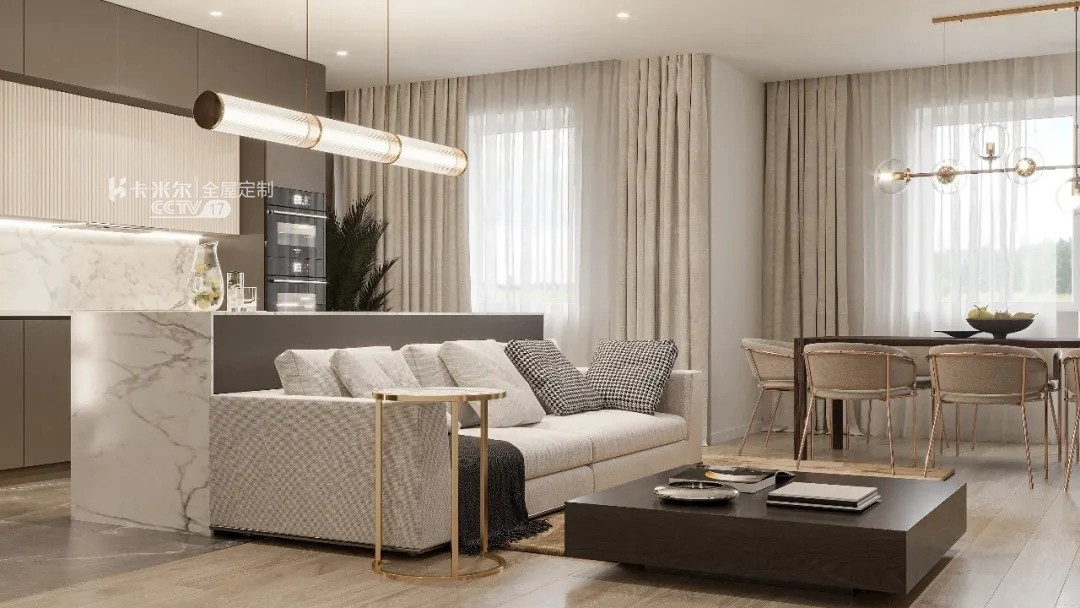 簡約輕奢風(fēng)格,結(jié)合材料的顏色,質(zhì)地,和使用規(guī)模,從功能出發(fā),賦予空間舒適的感受,再以黃銅金屬元素加持,造就奢華與尊貴,品質(zhì)滿滿。