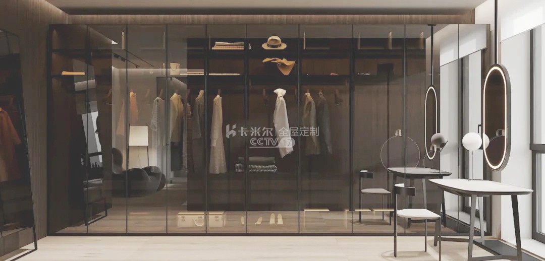 衣帽間是存放衣物鞋包的空間,兼具化妝、試衣等功能,強大的收納能力讓衣物規(guī)整有序,擺脫家居生活雜亂的困擾。