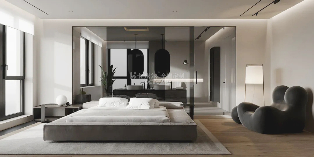 臥室空間設計簡潔而不隨意,高級卻不浮夸,摒棄繁復的造型和豐富色彩搭配;舒適、生活、品味、享受是空間的設計理念,和諧與統(tǒng)一中找到突破點,整體比例考究,造型精煉,通過細節(jié)和色彩造型、勾勒出一個精致優(yōu)雅的空間,彰顯低調(diào)與自然。