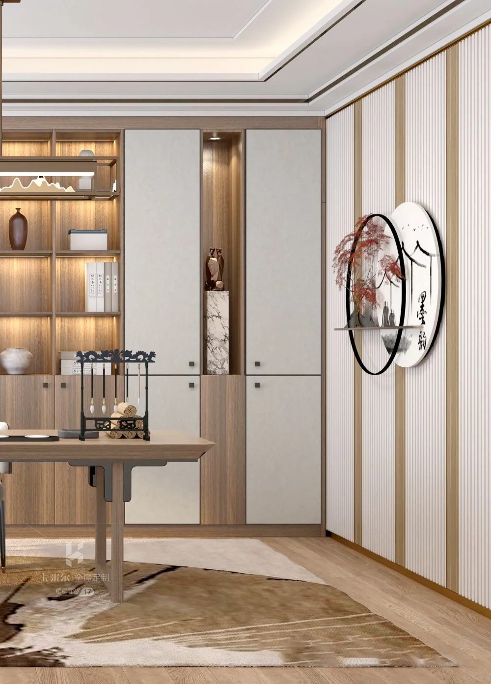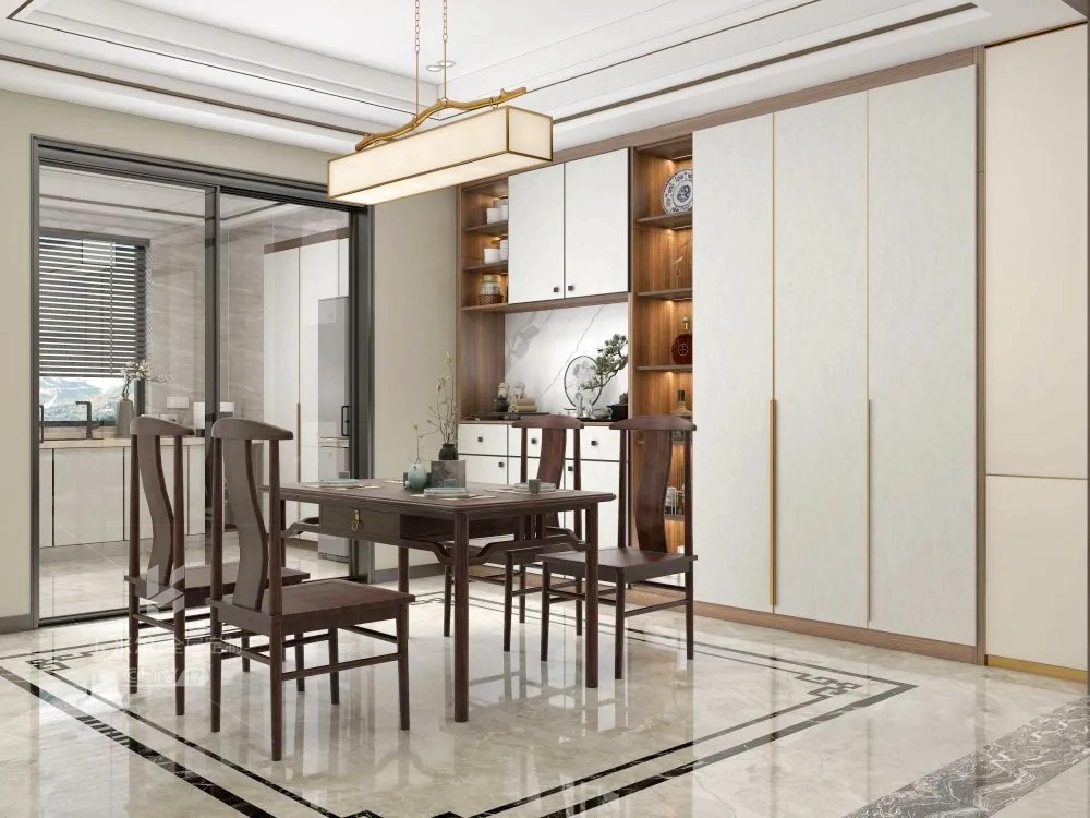 新中式是以現(xiàn)代人的審美來弘揚中國新古典文化,是具有東方禪意風骨的雅致空間。