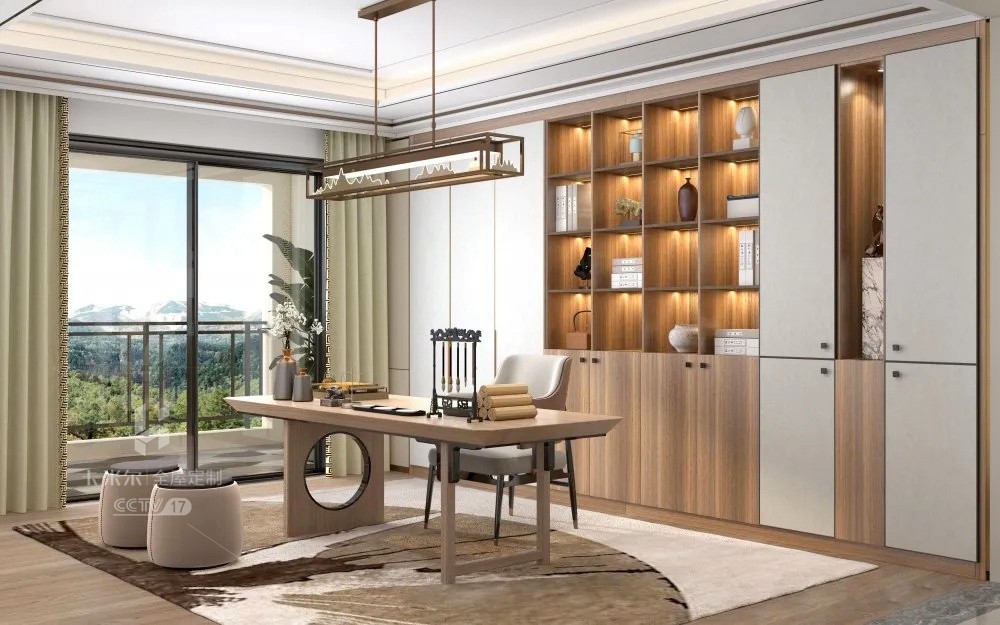 適當搭配古典的裝飾刻畫了禪意安靜的空間;到頂?shù)氖占{柜滿足了書本的收納需求;也烘托出文人墨客的雅致之氣。