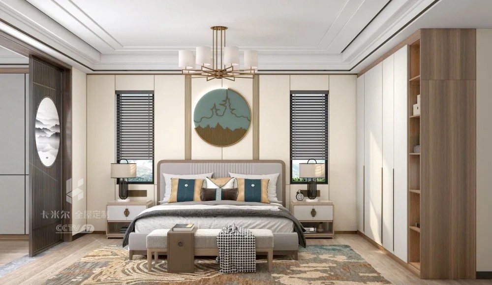 新中式臥室作為現(xiàn)代背景下的古典演繹,通過取其神韻不擺其形的風雅意境,使得整個空間呈現(xiàn)出典雅又不乏時尚的特色。