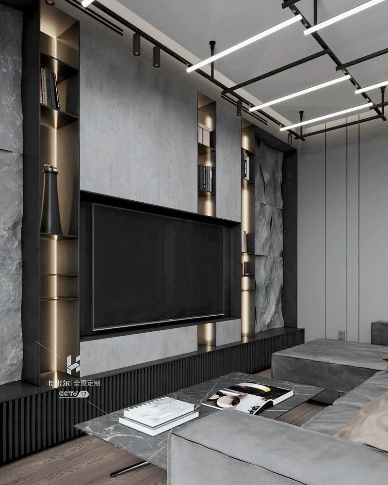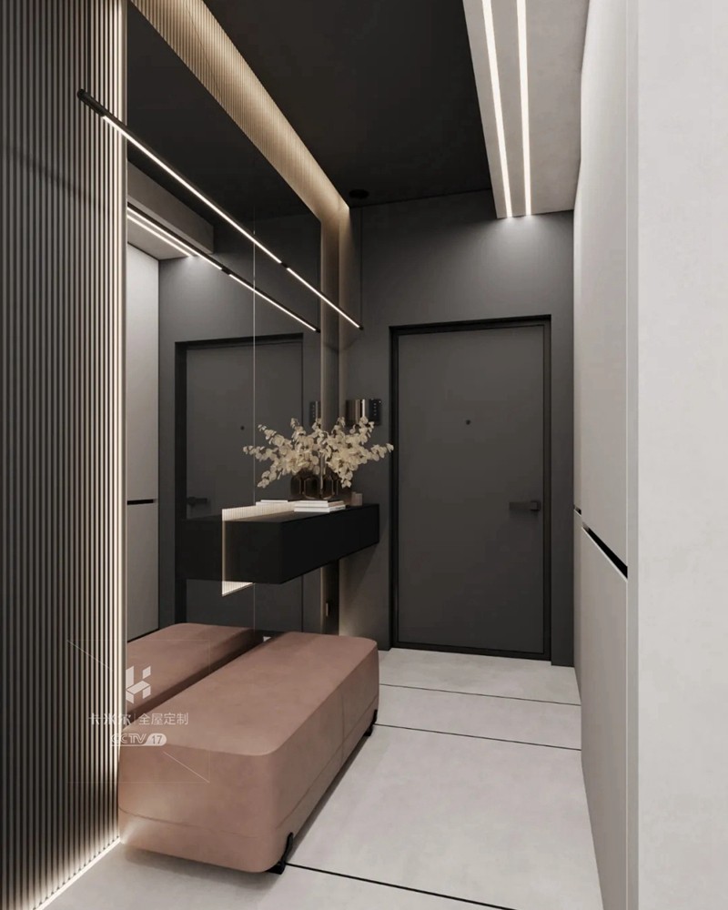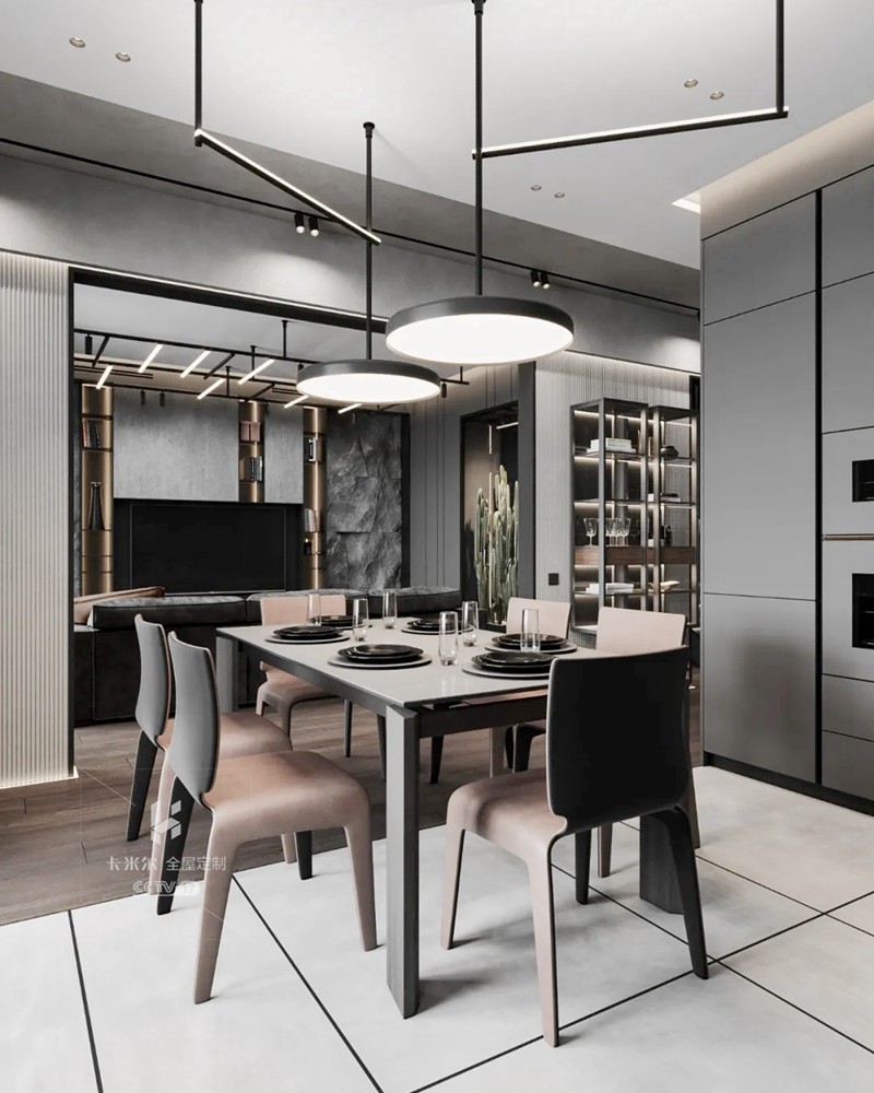 質(zhì)感高級黑,讓空間炫酷感十足;設(shè)計(jì)師運(yùn)用冷暖色調(diào)和燈光碰撞產(chǎn)生的強(qiáng)烈對比,最少的顏色卻有著極為豐富的層次感。對燈光的把控十分到位,柔和過渡的溫暖光線,不動聲色勾勒出空間的視覺重點(diǎn),又與深邃的色調(diào)完美融合,在照明功能和美學(xué)尺度上達(dá)成平衡。