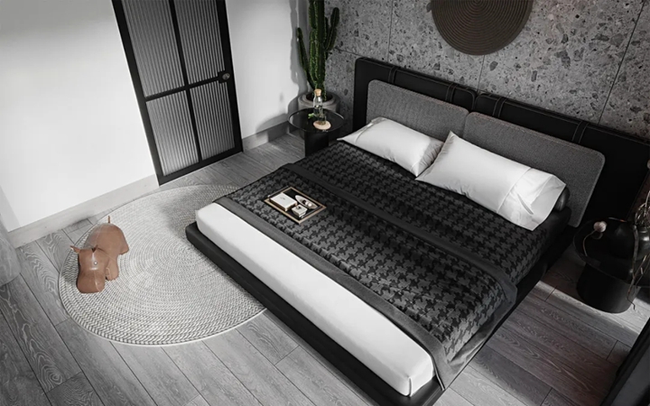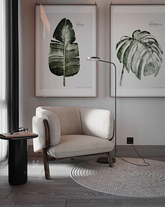臥室大面積的落地窗,溫潤(rùn)的木地板,黑灰色的色彩搭配,營(yíng)造出簡(jiǎn)潔,時(shí)尚獨(dú)具個(gè)性的設(shè)計(jì)感。臥室一角的米色布藝小沙發(fā),極簡(jiǎn)的線型臺(tái)燈,再放上一張?jiān)O(shè)計(jì)感極強(qiáng)的小茶幾,閑暇時(shí)坐在上面看看窗外的風(fēng)景,也是一件很讓人享受的事情。