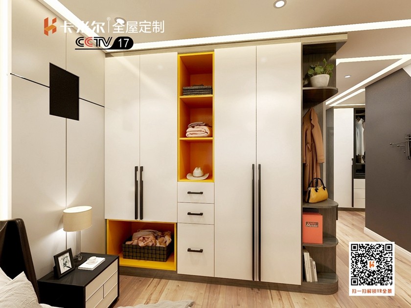 柜門做成一門到頂,頂天立地的柜門一氣呵成,高大簡潔的設(shè)計(jì)讓空間氛圍顯得寬敞明亮,一眼望去,如同裝飾墻一樣,與整體空間完美融為一體。